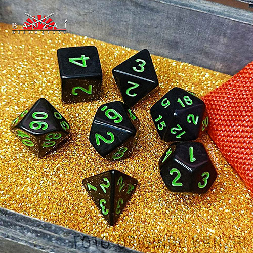 • Contenido del set: 7 dados (D4, D6, D8, D10, D12, D20 y D100)