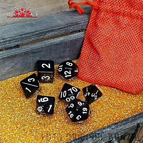 Nuestros dados de rol vienen protegidos en un elegante saquito, diseñado específicamente para mantenerlos guardados y organizados. Este práctico saquito no solo protege tus dados de daños y pérdidas, sino que también te permite llevarlos con facilidad a todas tus sesiones de juego. ¡Lleva tus dados a cualquier lugar y prepárate para la aventura con estilo y comodidad con Banzai!