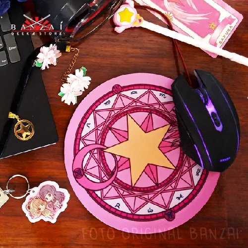 Estos mouse pads inspirados en en Sakura Card Captor capturan la esencia de Sakura, sus Cartas Clow y los encantadores personajes de la serie. Transforma tu espacio como una chica mágica y demuestra tu devoción por el anime que encantó a una generación.