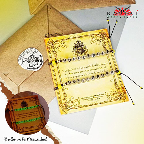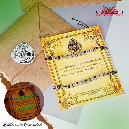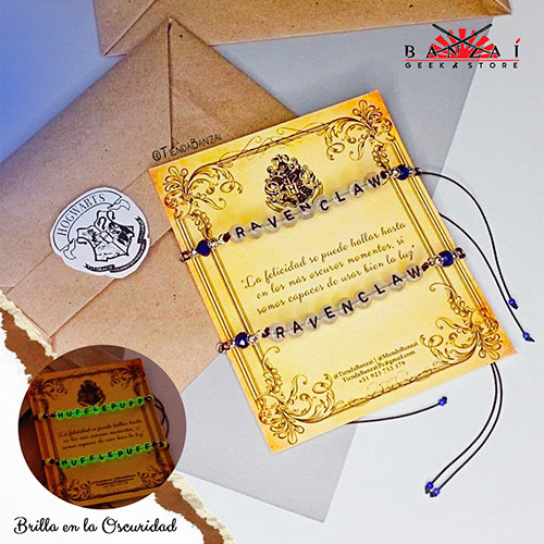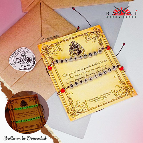 Cada pulsera está diseñada con los colores representativos de cada casa y las letras en resina con el nombre de las mismas tienen el "encantamiento lumus" impregnado para que iluminen en la oscuridad.  capturando la esencia de cada una de ellas. Son el accesorio perfecto para demostrar tu lealtad en pareja o grupos de amistad y el orgullo por tu casa favorita, o para coleccionar todas y mostrar tu amor por el universo de Harry Potter.