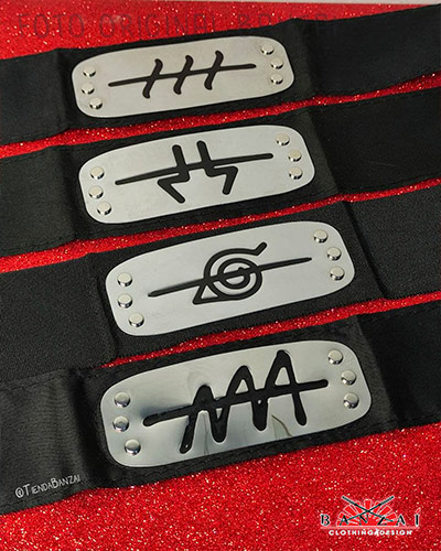 - Bandana Konoha (Aldea Oculta de la Hoja): Modelos en Negro, Rojo o Azul.